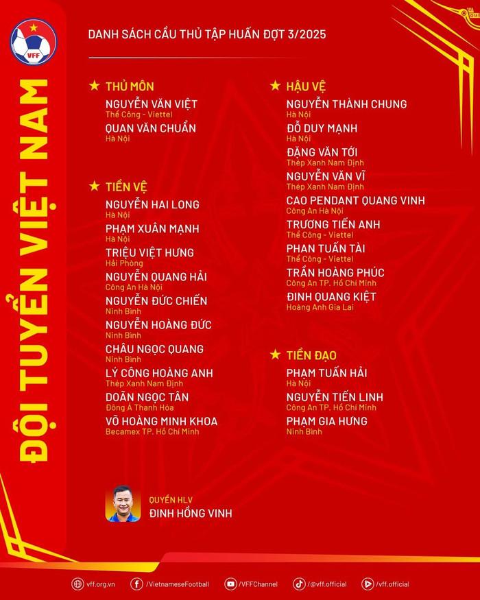 VFF cũng nhấn mạnh: “Đây là tập trung lần thứ 3 trong năm 2025 của đội tuyển tuyển, với mục tiêu chính là kiểm soát, kiểm tra và